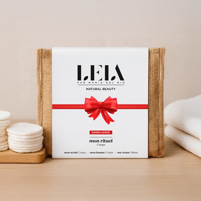 Présenté dans le sac signature LELA en jute, ce rituel corps en édition limitée rassemble vos indispensables pour nourrir, adoucir et réconforter la peau.