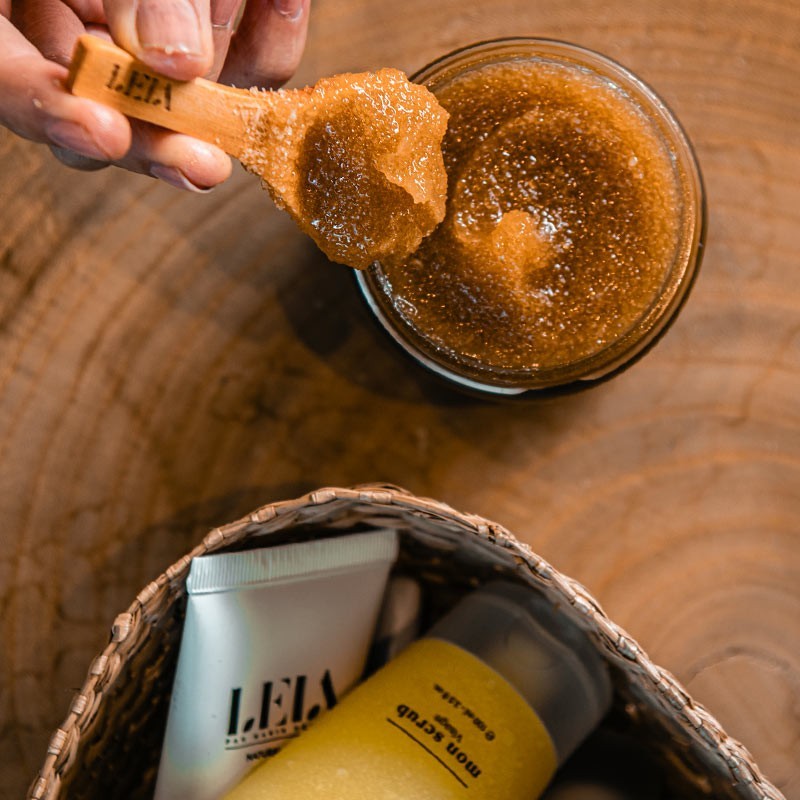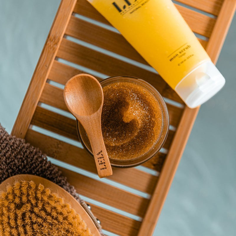 «mon scrub Visage» prépare aux routines, revitalise et exfolie votre peau tout en douceur tandis que «mon scrub Corps» vous fait vivre une réelle expérience de renouvellement cutané.