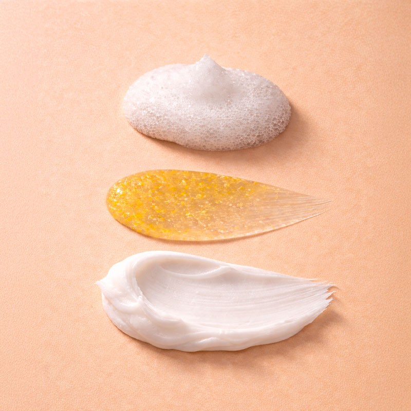 Cette routine associe nettoyage doux, exfoliation délicate et hydratation réconfortante pour révéler un teint plus clair et une peau plus régulière.